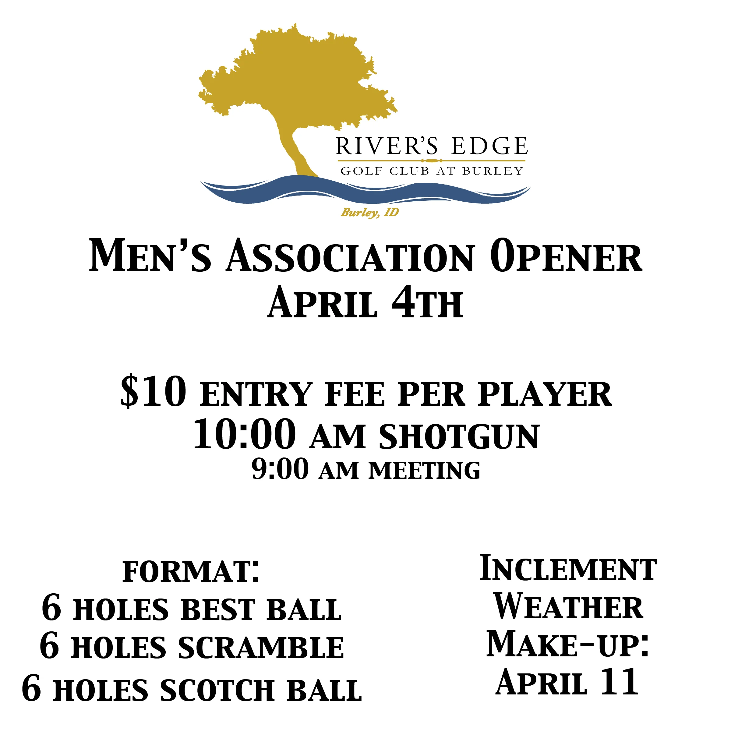 Men's Association Opener Saturday, April 4, 2015 10:00 AM 11:00 AM 10:00 11:00 Google Calendar ICS View fullsize